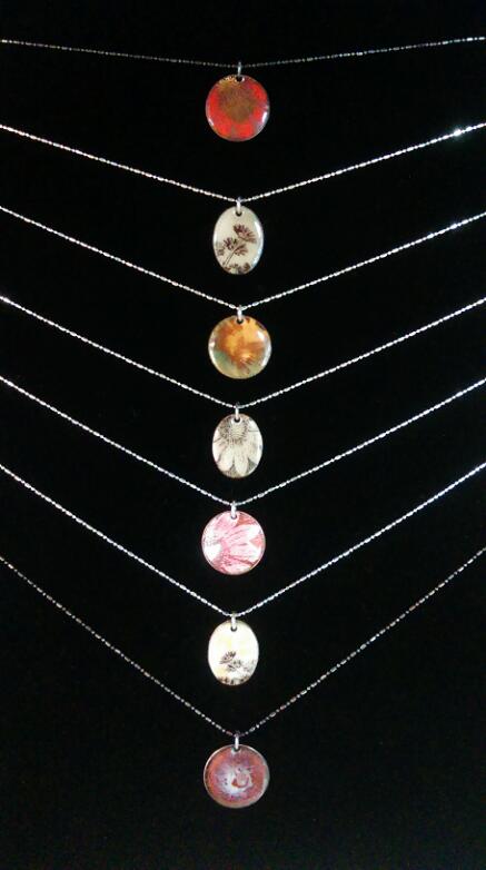 Double Dip Gallery has a new local artist to add to our list of wonderfully talented individuals that keep the beauty of the arts alive in Lodi, CA. Megan Van Houten has been gracious enough to present her enamel jewelry line at Double Dip Gallery. Each piece is unique and you can be sure to know that whichever earring set or necklace you put on from Megan’s line, you will be the only person to own that particular style. Creativity, Natural Beauty, and Style of its own, would be the best way to describe Megan Van Houten Enamel.
