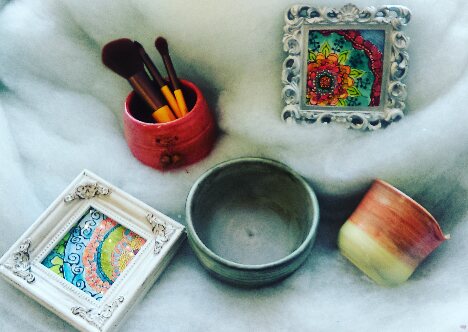Number 11 -pottery by Suzanne Platt and miniature paintings by Christine Leach